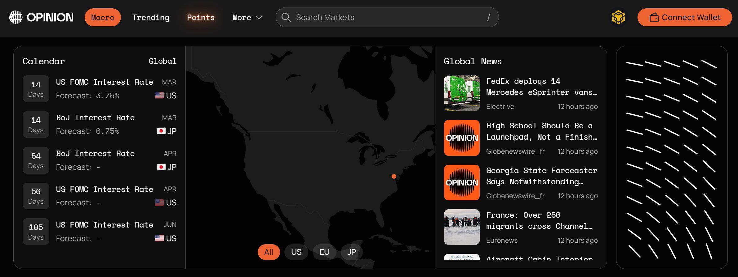 - Opinion.Trade 上的市场涵盖加密货币、政治、体育和宏观经济事件,提供多样化的交易机会。