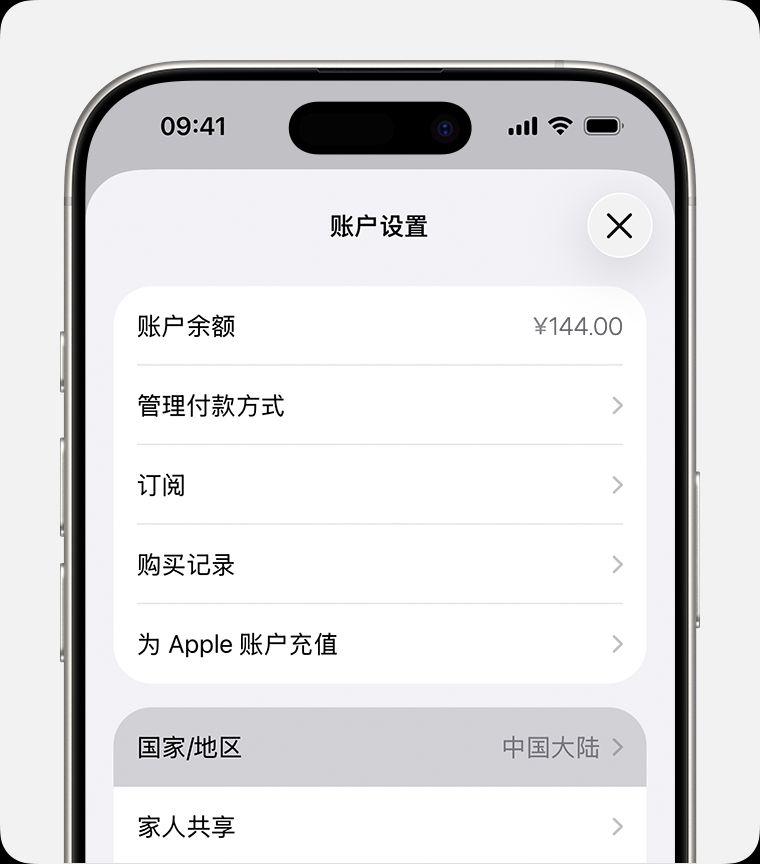 - 如果你是“家人共享”群组的成员,你可能无法更改你所在的国家或地区。了解如何退出“家人共享”群组。