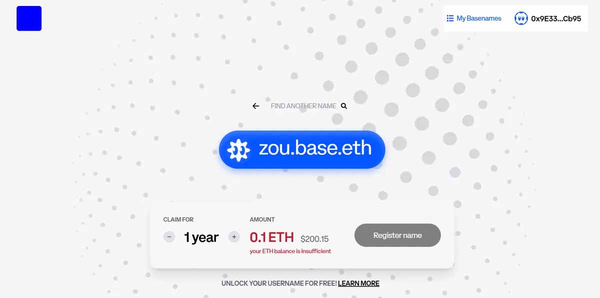 Base Names 是Base 官方推出的去中心化身分与网域服务。它允许用户注册以.base.eth 为结尾的专属名称,将冗长且容易输入错误的0x… 钱包地址,转化为简单、人类易读的个人专属网址。