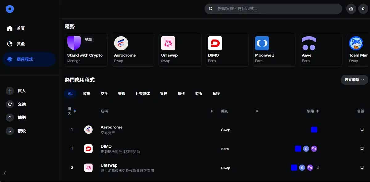 除了官方推动的基础设施, Base 链上还有许多由社群与第三方开发团队创建的DApp ,涵盖了金融、社交与艺术等多个领域: