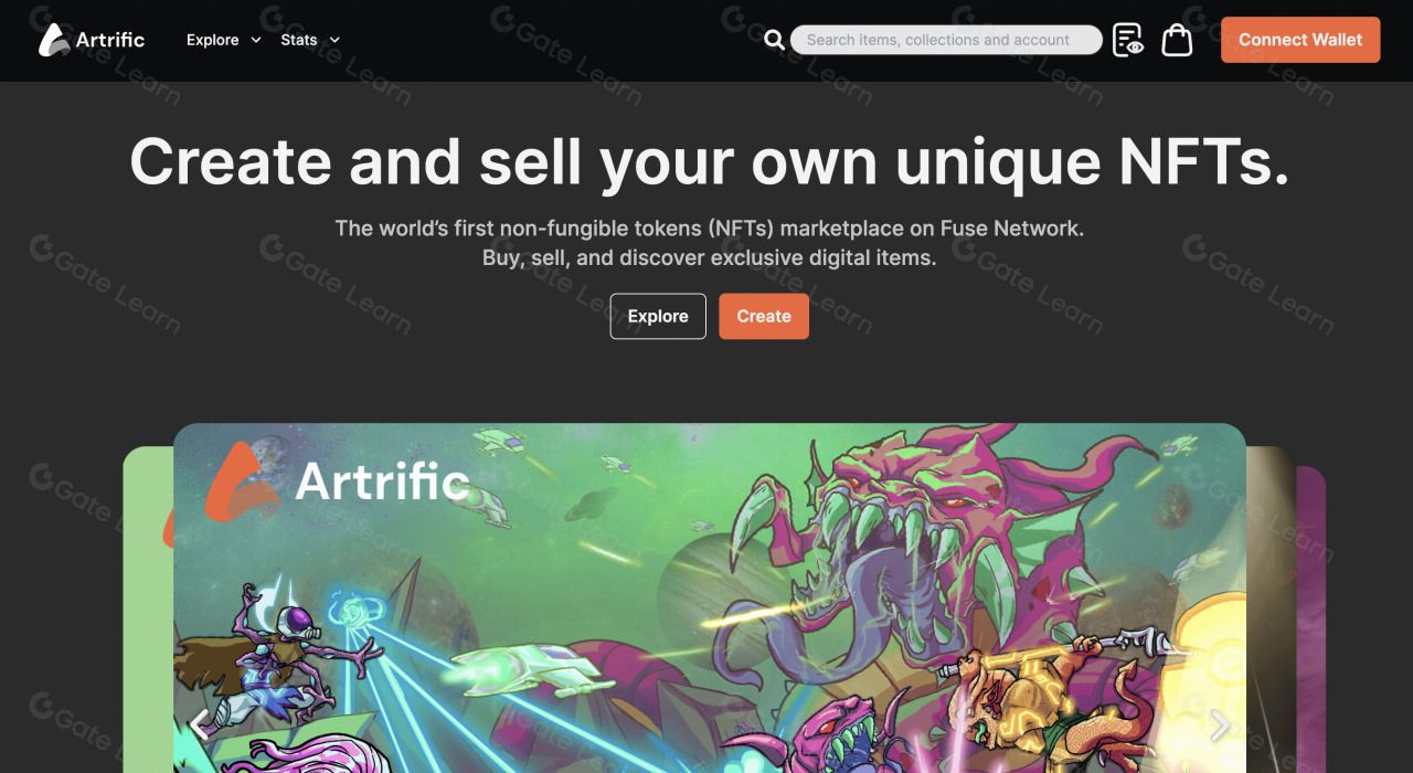 作为 Fuse 网络上第一个 NFT 市场,支持点对点交易服务,为用户提供安全便捷的交易场所,用户可以在 Artrific 进行 NFT 铸造、购买、出售以及竞标上百万种 NFT 资产,用户需要用 $FUSE 来支付交互费用以及购买物品的费用。
