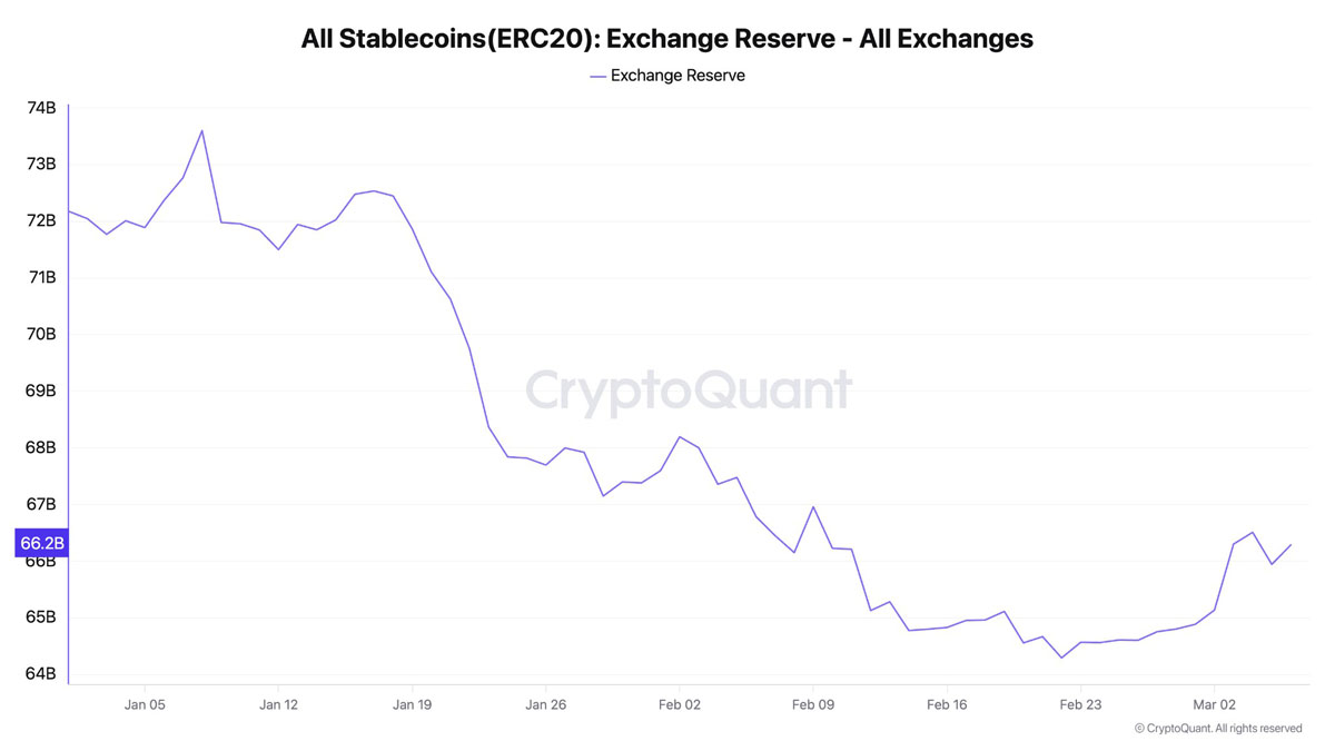 交易所上的稳定币供应情况。来源:CryptoQuant