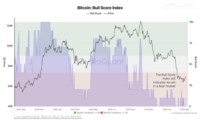 Bull Score指数依旧深陷看跌区间。来源:CryptoQuant