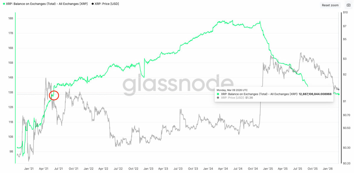 因此,周三交易所的 XRP 余额降至 129 亿,上次出现于 2021 年 5 月。