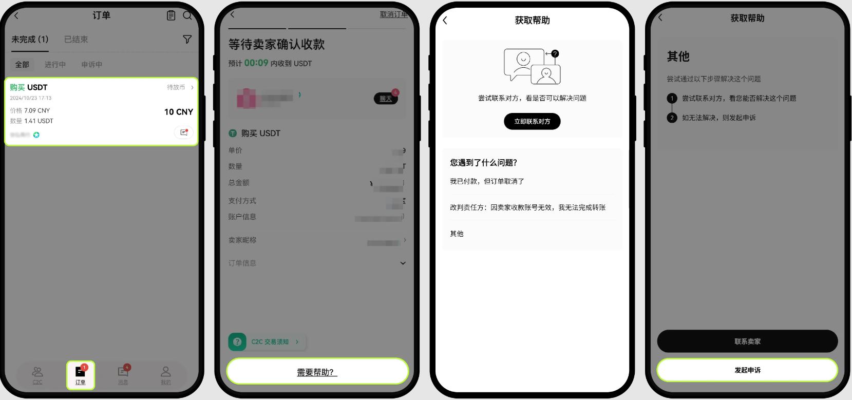 如何申诉C2C买卖币订单并联系客服