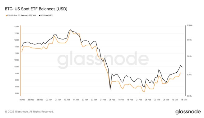 美国比特币现货ETF持仓。来源:Glassnode
