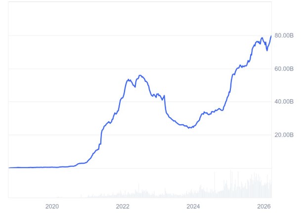 支撑看涨观点的另一个因素,是稳定币流动性回升以及中东战争期间对稳定币需求的升温。USDC市值已攀升至接近795.7亿美元的历史高位,较2月初的约700亿美元大幅增长。