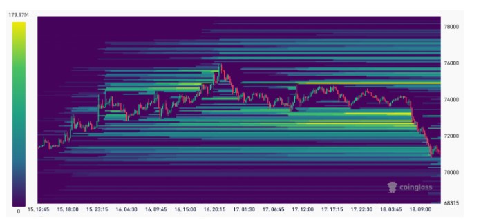 比特币期货预计强平区间(美元)。来源:CoinGlass
