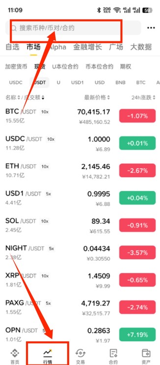 1.首先打开币安 点击下方行情