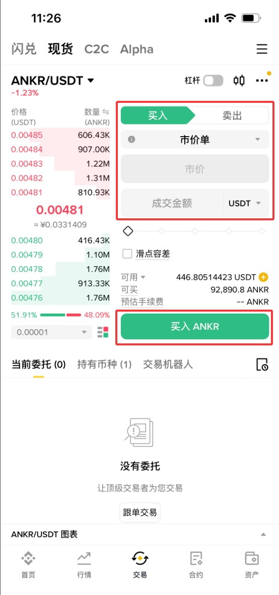 下面以币安为例,为大家演示ANKR币购买步骤教程。