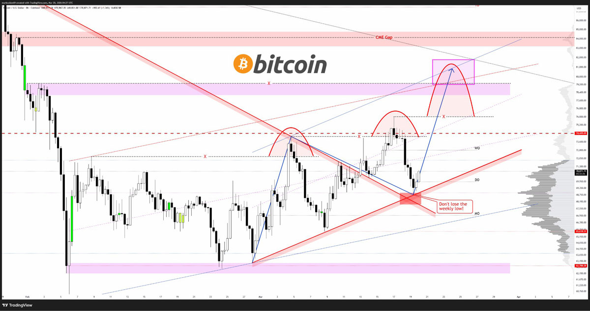 - 比特币价格必须持有7万美元,才能避免未来数周内进一步下跌。