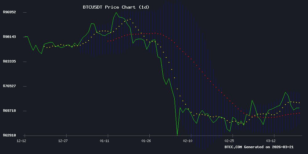 据BTCC的金融分析师Mia称,目前比特币价格为70,467.51美元,略高于20日移动平均线(70,117.97美元),表明存在直接技术支撑。布尔带的交易区间为65,409.55美元至74,826.39美元,价格接近中轨,表明价格处于盘整阶段。MACD指标虽然仍为负值,但其柱状图为195.45,这可能预示着空头动能有所减弱。Mia表示:“价格守住20日移动平均线,加上MACD指标可能出现收敛,这表明如果价格突破布尔带中轨(70,117.97美元),则可能测试上轨阻力位。”