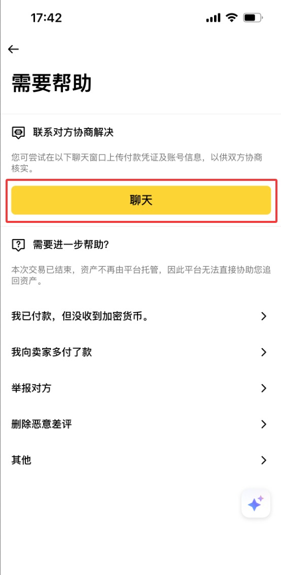 你可以问,买方已经付款但银行卡被冻结,这一项我们应该怎么办?我们就可以跟商家来进行沟通,然后发起申诉。在申诉的时候可以根据提示来描述一下问题,并且上传一下相关的凭证,比如说冻卡的截图或者视频。上传好之后提交申诉,然后等待币安交易所来做主就可以了。当然那我希望大家都不需要使用这个功能,希望我们从此以后可以安全自在的出入金。