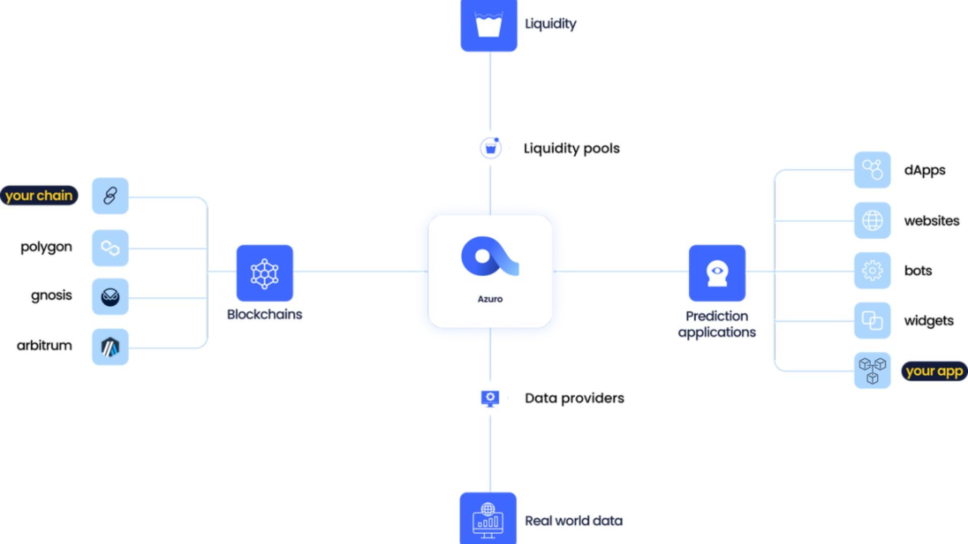 Azuro 本身并不是一个预测市场,而是一个专为预测市场设计的流动性层,可以同时服务于多个前端应用,为各个应用中的市场提供流动性。这种设计结构称为「流动性树」,有别于Polymarket 的流动性分布于不同的市场,Azuro 将流动性集中在一起让所有市场共享,令流动性提供者作为所有市场的对手方,有助于分散流动性提供者的风险,并支持更多小规模的预测事件,提高平台的资本效率,增加流动性提供者的真实收益。