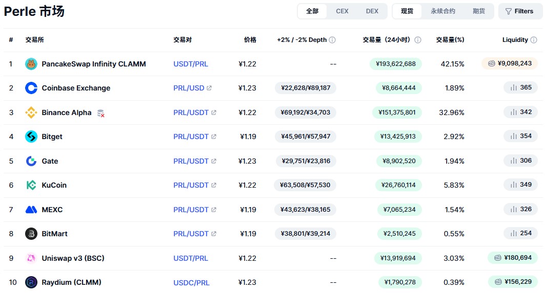 您可以在在币安、bitget、gate等主流交易所,购买交易Perle(PRL)代币