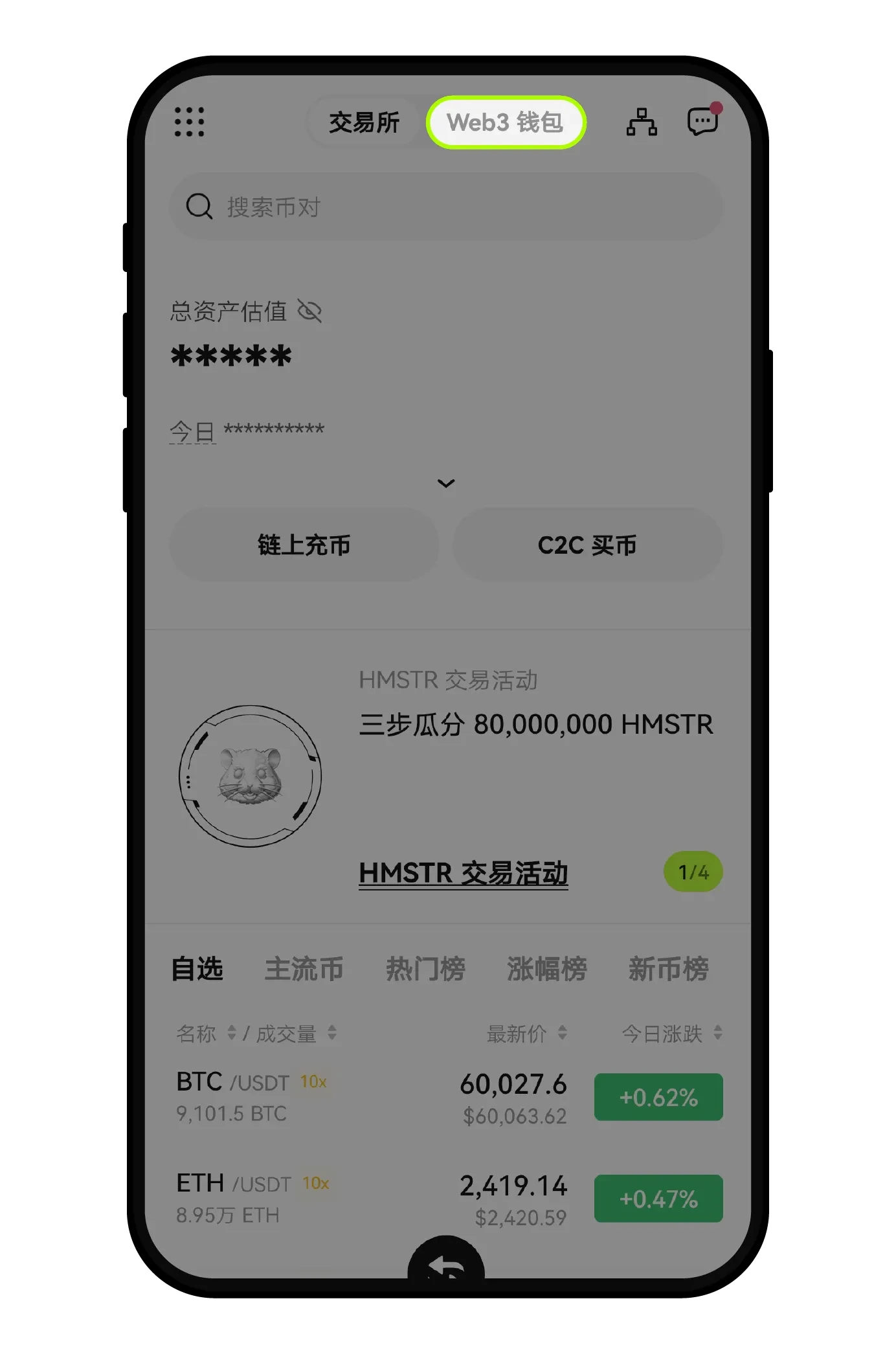 打开欧易App(官方注册 官方下载),选择【Web3 钱包】