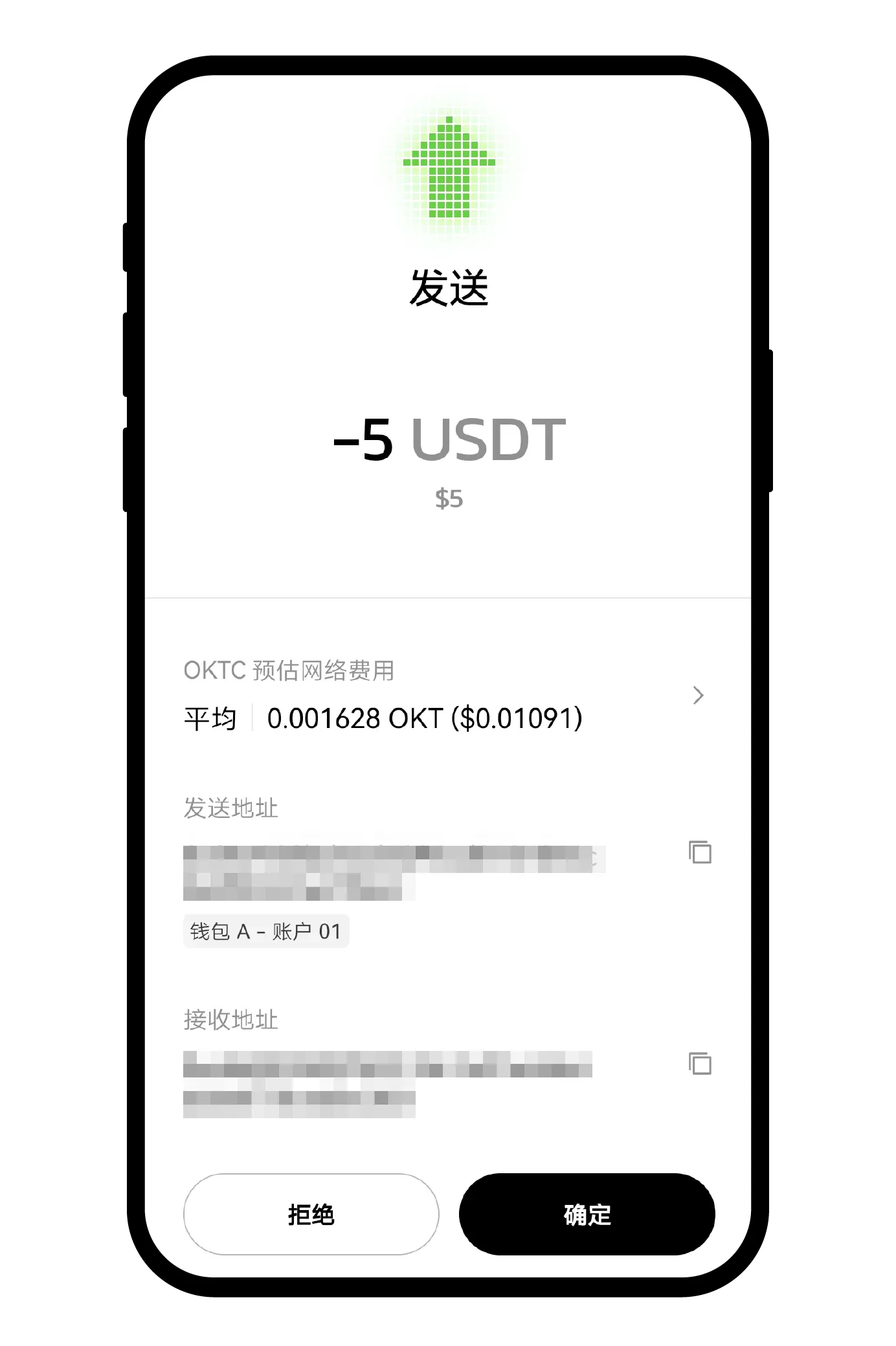 注意:转出时钱包里需要有少量OKB作为手续费(Gas费),如果余额不足需要先转入少量OKB。