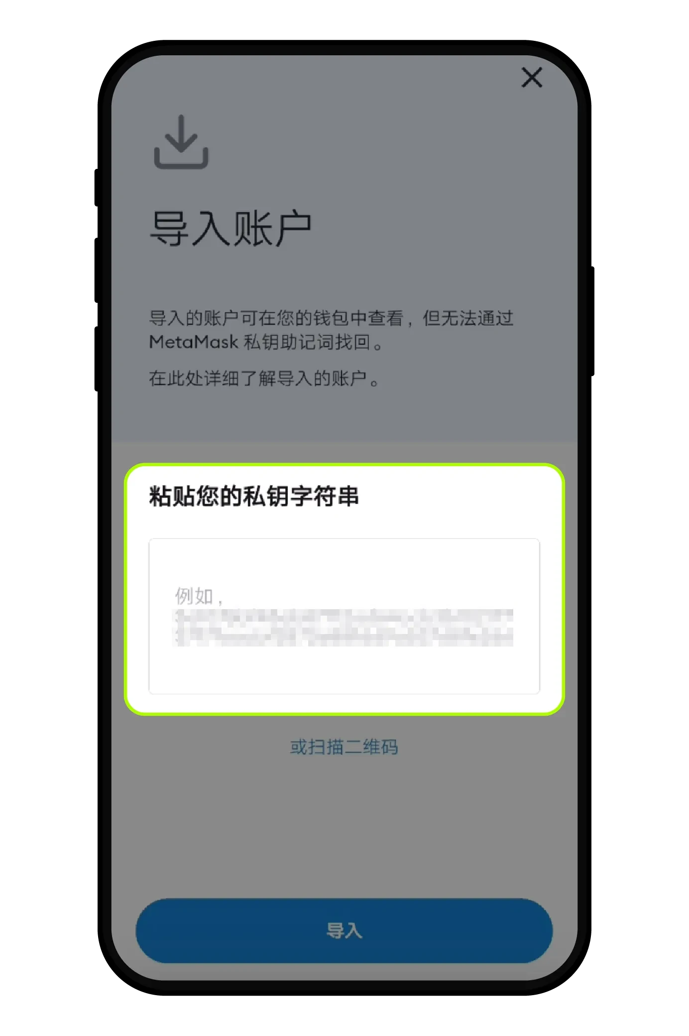 粘贴【私钥】 --【导入】完成操作。