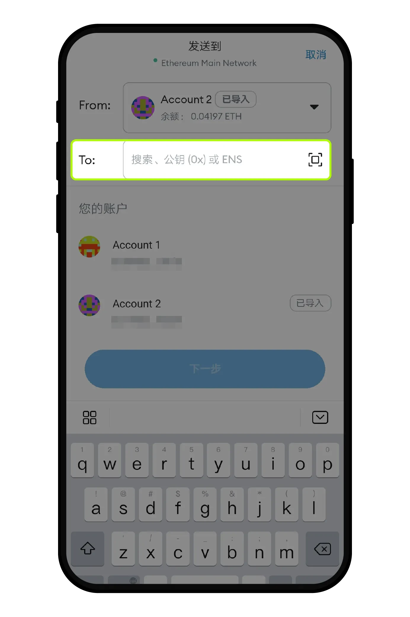 粘贴上一步复制的地址到接收地址,点击【下一步】,按要求输入密码并完成操作,即可找回转错链的资产。