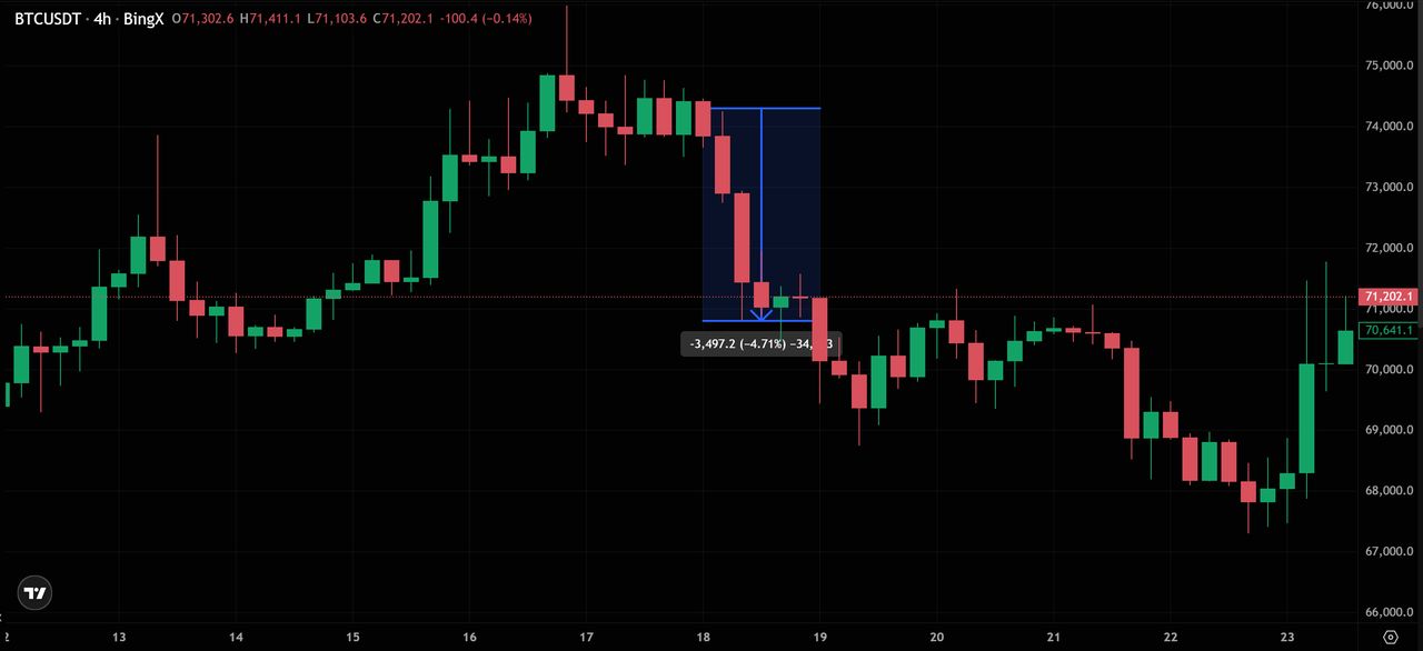 例如,在2026年03月18日,当FOMC将通胀预测上调至2.7%时,比特币出现急剧5%的抛售,因为投资者转向美元和黄金。