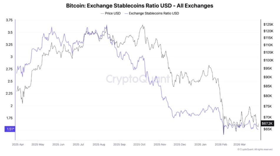 比特币交易所稳定币比率(截图)。来源:CryptoQuant