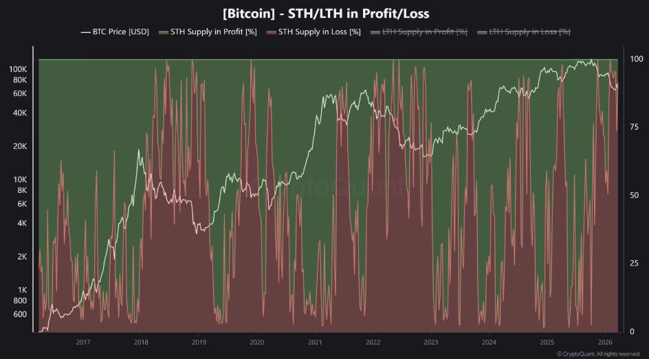 比特币STH盈亏情况。来源:CryptoQuant/X