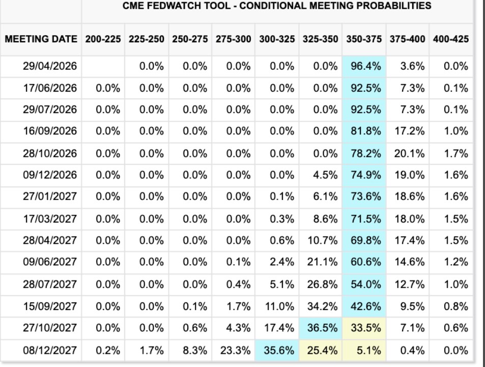 美联储目标利率概率(截图)。来源:CME Group FedWatch Tool