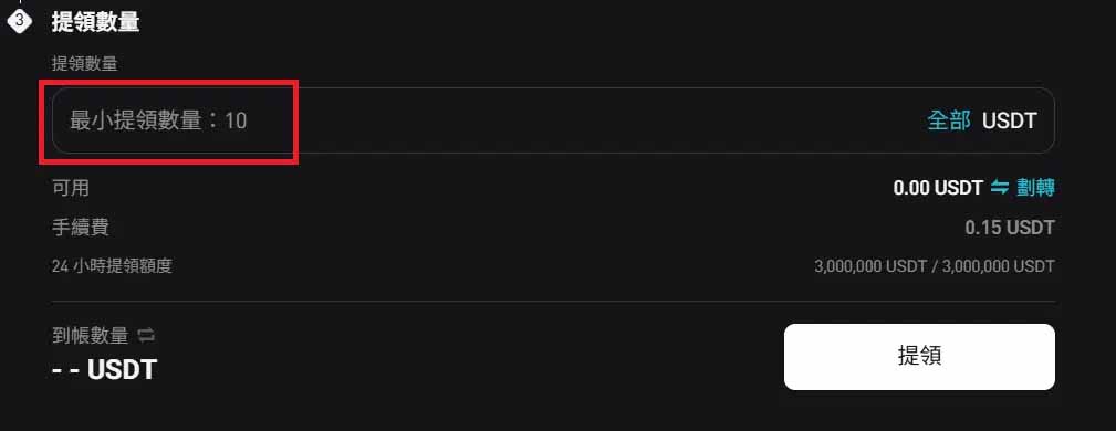 最低提领数量为 10 USDT