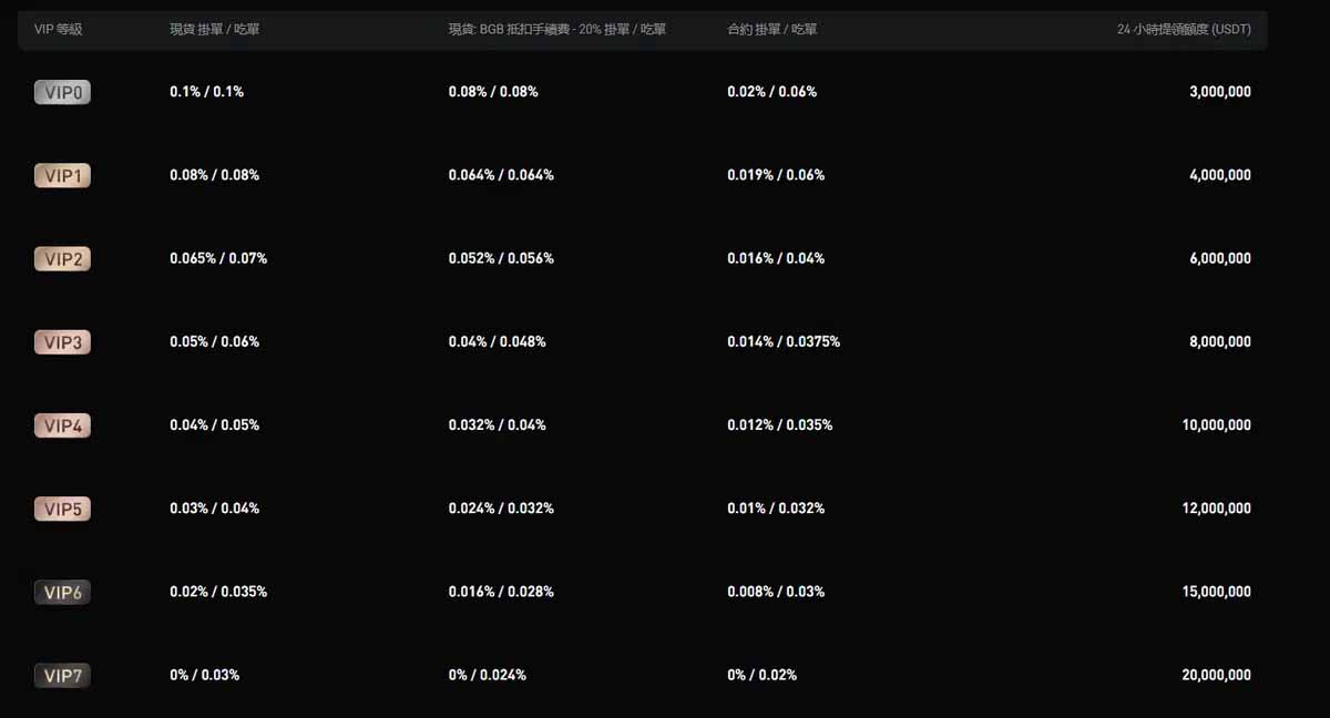 VIP 除了提领额度不同,交易的手续费也不一样