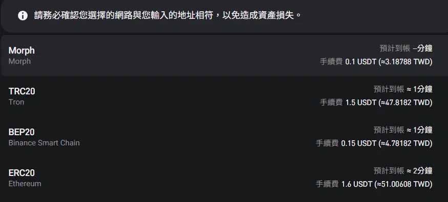 - 低延迟网络( TRC20、BEP20、Layer 2 网络):处理速度快,正常情况下约 5 至 10 分钟就会到帐。