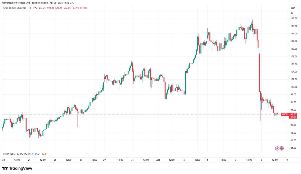 随着石油供应危机担忧缓解,霍尔木兹海峡的运输开始恢复,WTI 原油价格跌至每桶 91 美元。尽管有报道称沙特一条石油管道遭到袭击。