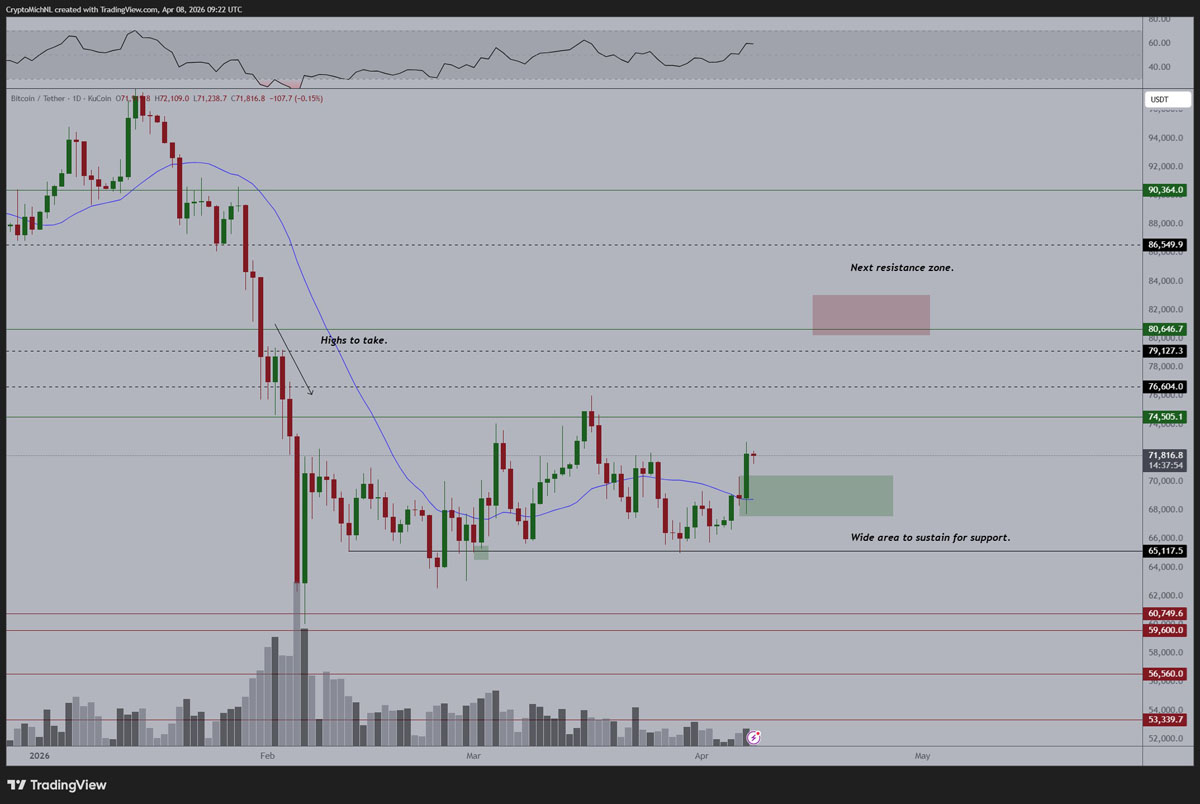 与此同时,交易者 Daan 加密交易表示,近几周的 7.2 万美元争议点需要清算。