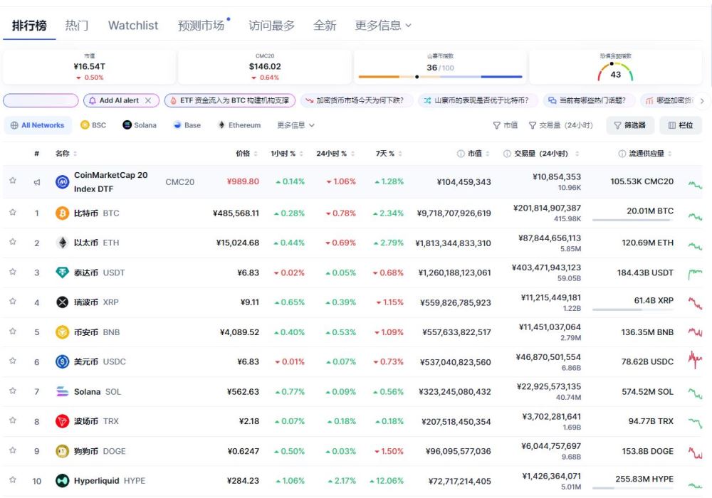 加密货币市值排名