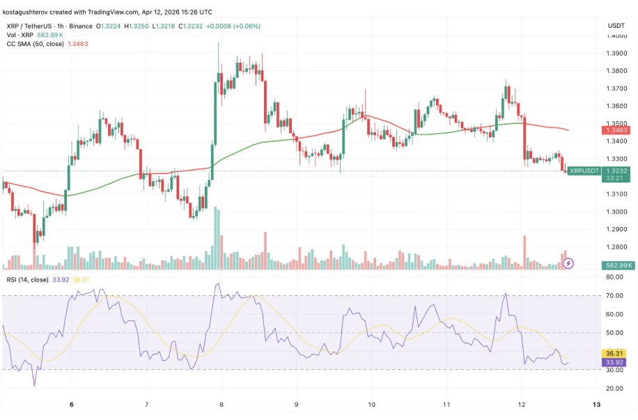 在撰写本文时,XRP 的交易价格为$1.3232,正好位于$1.3220 的关键虚线支撑水平。这个代币今天下跌了1.46%,在过去的一个月中下跌了4.81%。