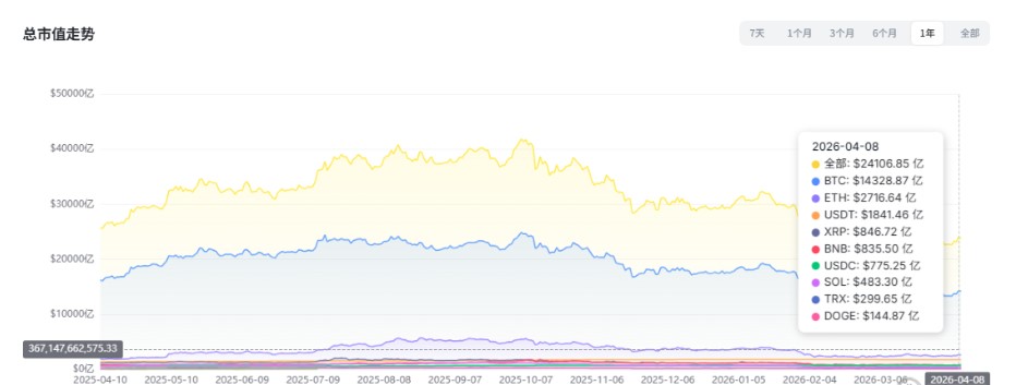 USDT与USDC两大稳定币跻身前十。截至4月上旬市值分别达1840.7亿美元和775亿美元,占稳定币总市值的近85%,机构资本入场持续推升其需求。