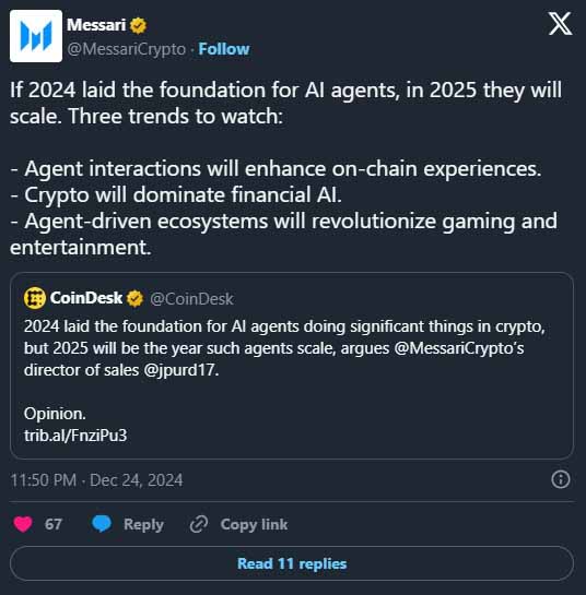 另一个相关发展是链上AI 代理的出现:这些自治程序持有加密货币钱包,执行交易,并根据程序逻辑做出决策,无需人类介入。不同于通过API 连接于集中式交易所运作的传统交易机器人,链上代理直接与去中心化协议互动。