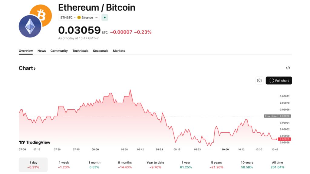 ETH/BTC 比率通常被描述为加密货币的内部指南针。它衡量的并非绝对收益,而是反映生态系统内资金的流动方向。