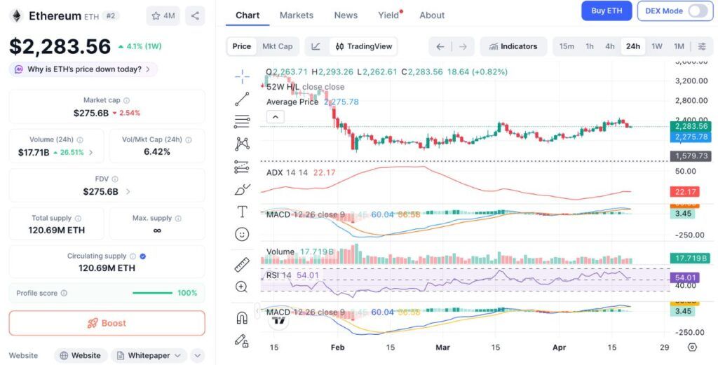ETH 24小时价格图表(来源:CoinMarketCap)