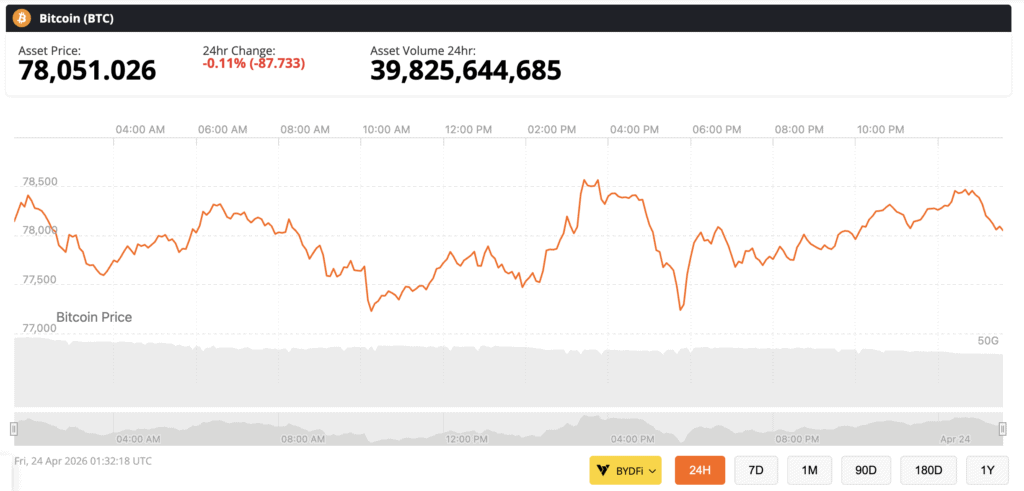 比特币价格维持在78,000美元。来源: 勇敢的新硬币
