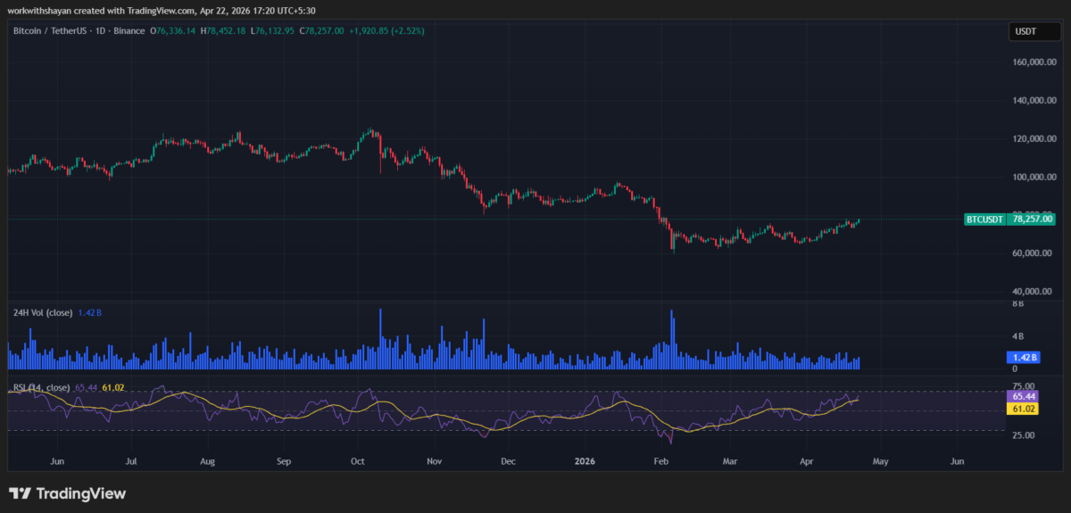 比特币价格分析(1日图表): Bitcoin 面临向78000美元迈进的上涨压力