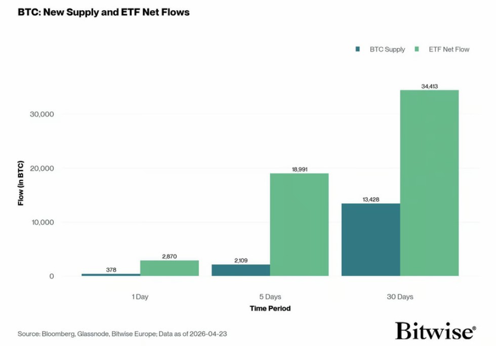 新比特币供应与美国现货比特币ETF净资金流。来源:安德烈·德拉戈什/X