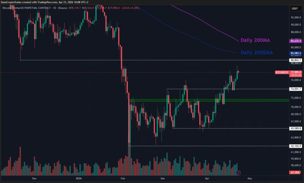 BTC/USDT 永续合约日线图。来源:Daan Crypto Trades/X