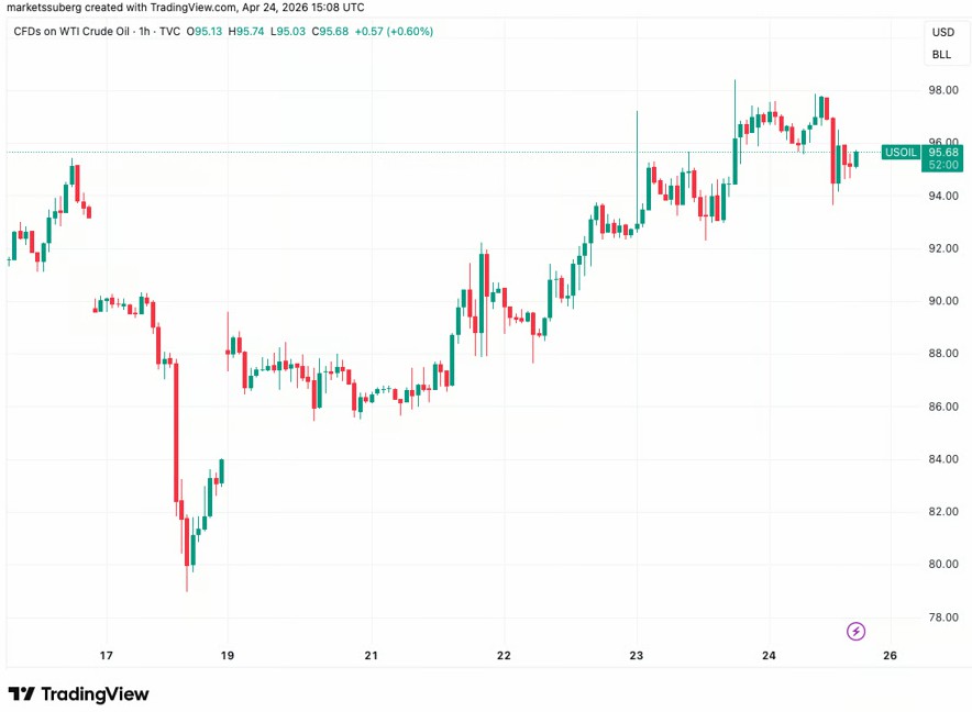 在缺乏新的地缘政治信号的情况下,风险资产的催化剂表现喜忧参半,导致美股走势横盘整理。WTI原油在一度逼近100美元关口后,回落至95美元。