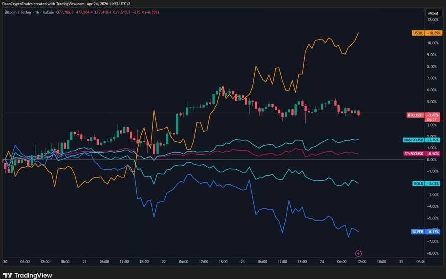 比特币(BTC)在7.8万美元处“停滞不前”,原油异动威胁风险资产新紧缩