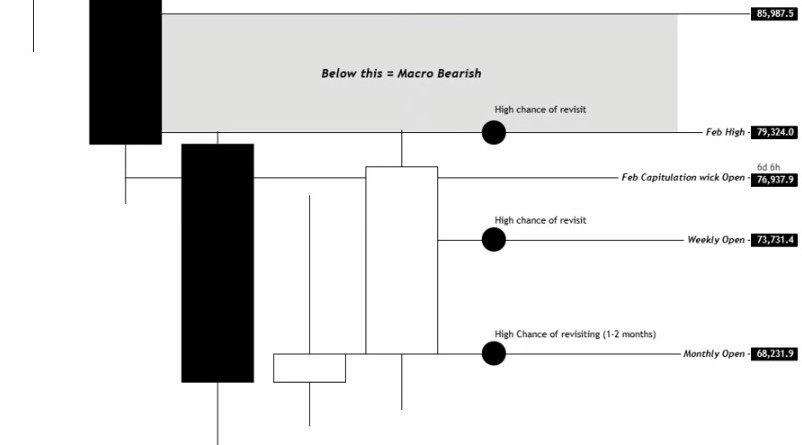 他们认为,即使收盘价突破8万美元或更高阻力位,也可能不足以使BTC/USD避免跌至6万美元以下的新宏观低点。