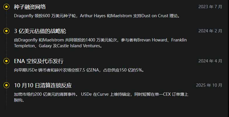 从种子资金到成为第三大数字美元,塑造 Ethena 的重大 事件。