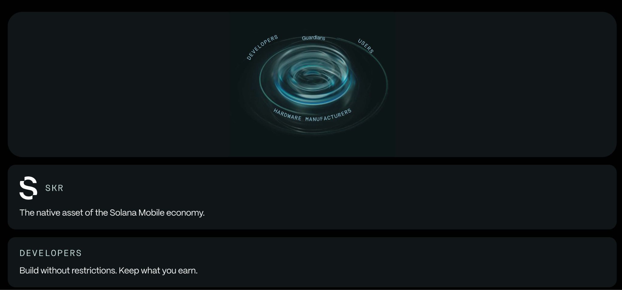 - Solana 生态系统基础设施 — 作为 Solana Labs 的子公司产品,SKR 与 Solana DeFi、NFT 和 DePIN 生态系统紧密集成