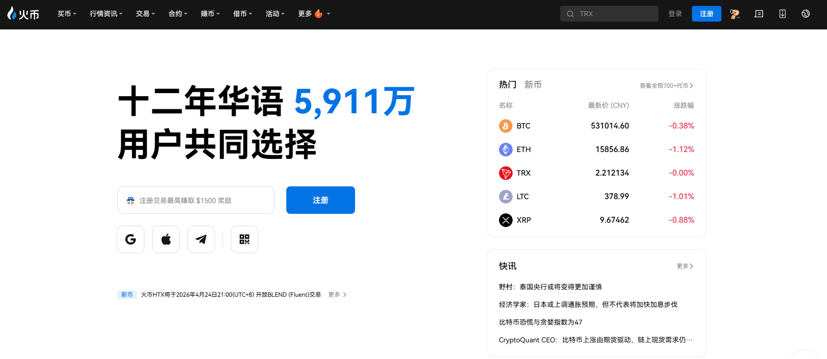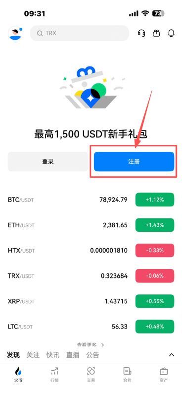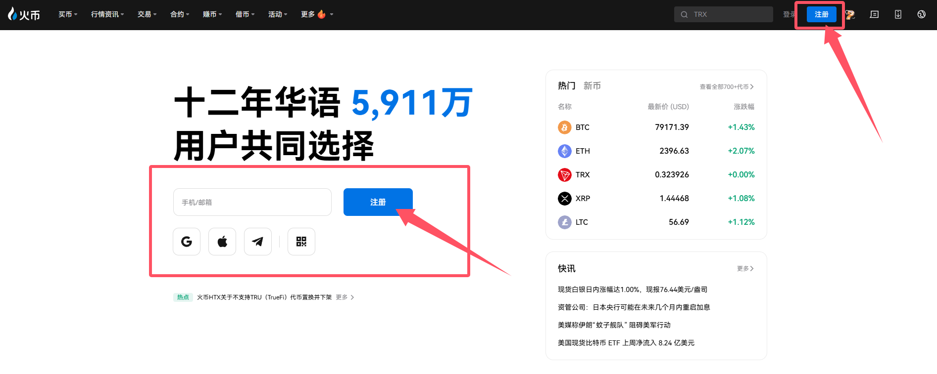 1.打开htx火币官网或者打开htx APP,点击注册,如图