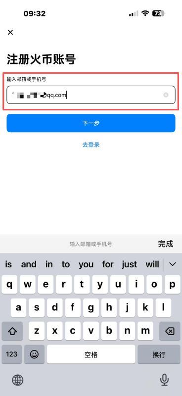 3.我们以邮箱注册为例:输入国内QQ邮箱,点击下一步,如图
