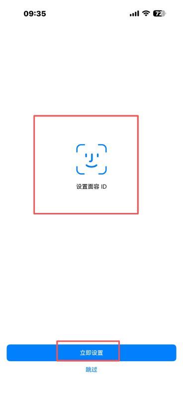 8.注册就完成了,点击设置面容ID,点击立即设置,刷脸完成即可。如图